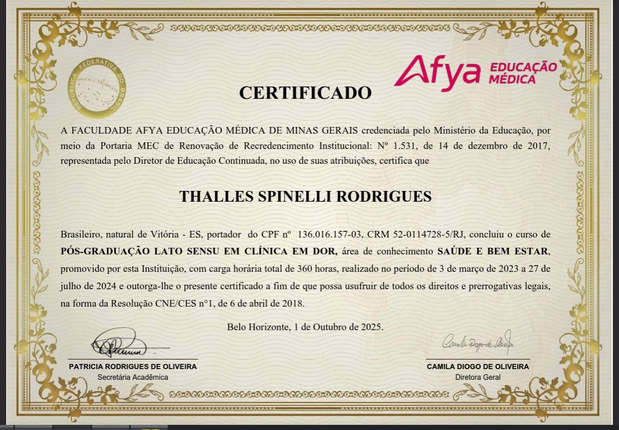 Sou Thalles, médico generalista com especialidade em clinica da dor, com experiência em tratamento de pacientes com quadro de dor crônica como por exemplo dor articular em joelho, ombro, coluna, dor pós herpes zoster.